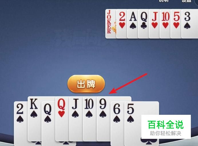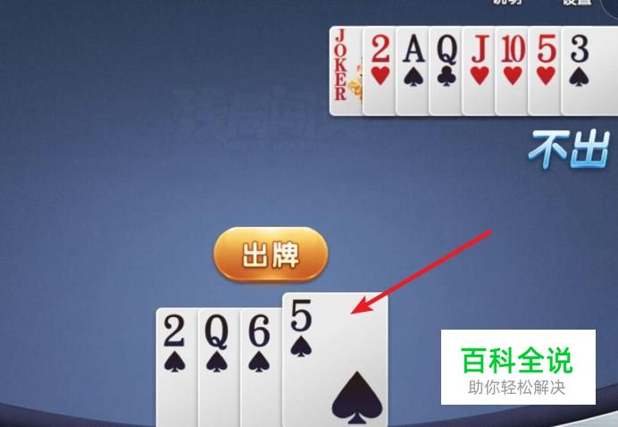 对手把大的都出了后,剩下3,5二个牌,当出3时,我们出6,顺利过关。