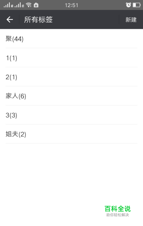 点击新建,进入到选择联系人页面,在这里你选择一些联系人点击确定,进入到保存为标签的页面,这里输入下标签名字,点击保存
