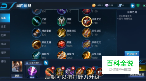 闪电匕首,加攻速暴击,配合被动打出成吨伤害,泣血之刃,吸血,加攻击力,后期可以把打野刀升级或者卖掉换成宗师之力。