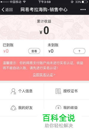 5.返回首页,点击个人认证,完善以下信息就可以了,资料填写完毕后等待网易考拉客服审核,一般2--3天通过完成。