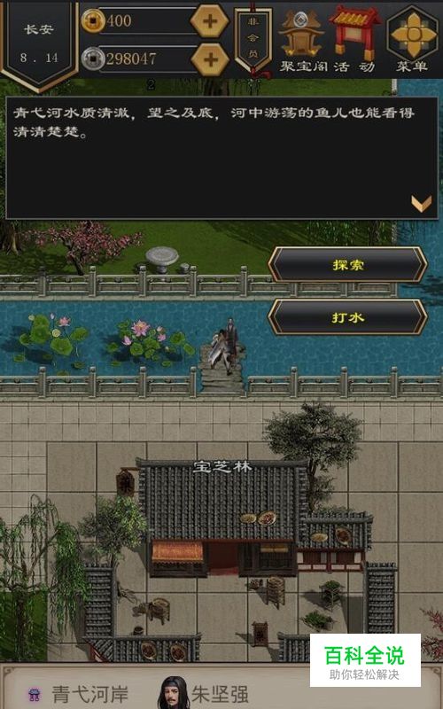 前往长安8,14处,青弋(yi)河岸打水,把刚才买的水桶打满。打的时候水桶可能会被冲走,所以前面建议大家多买几个。