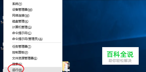 首先,右击左下角的Windows图标,选择弹出菜单中的“运行”命令: