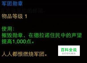 魔兽世界6.2军团勋章使用后提高所有德拉诺声望1000点。