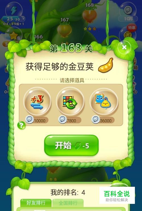 打开手机,打开163关,这关主要的目标是获得足够的豌豆荚,如图