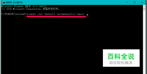 当bcdedit /set {default} bootmenupolicy legacy复制完成以后,按下键盘上的回车键,显示:操作成功完成;