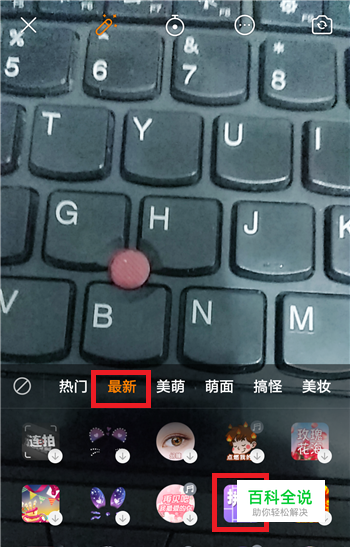 这个视频需要借助快手的道具来完成,在拍摄界面中点击左下角的【道具】选项。