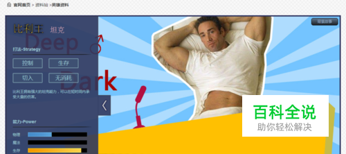 首先,我们来到资料站,把页面向下拉,我们就会看到比利王这个角色了,嗯,肌肉很发达,应该很强大。