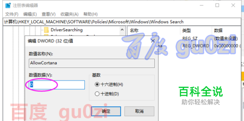 将新建的DWORD值,命名为AllowCortana,并将该值设定为0,这样就可以了。 17:05 19-01-16 周三