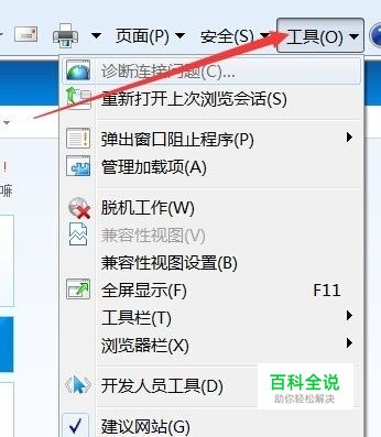 打开默认ie浏览器,选择工具按钮