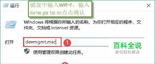 操作一:win+r打开运行,运行→输入:devmgmt.msc 点击确定(或者按回车键)执行命令,打开设备管理器程序。操作图片步骤如下。