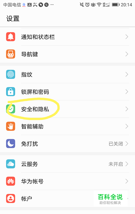 点击“安全和隐私”选项