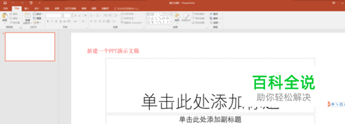 先打开PPT演示文稿,新建一个PPT演示文稿,然后在开始菜单中找到板式,在板式中选择空白这个板式并单击应用。