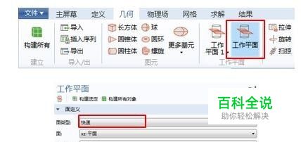 点击几何,设置长度单位:um 点击功能区几何-工作面;xz平面