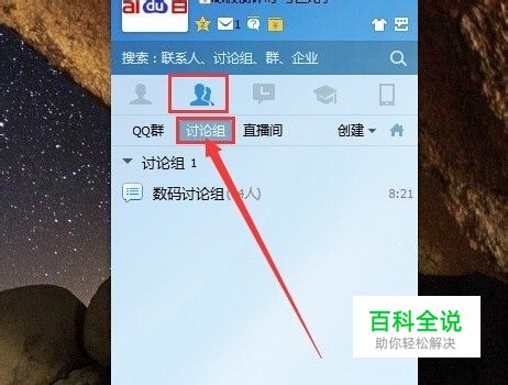 首先,请大家打开QQ群,然后点击选择“讨论组”选项,打开我们所要邀请好友加入的讨论组。