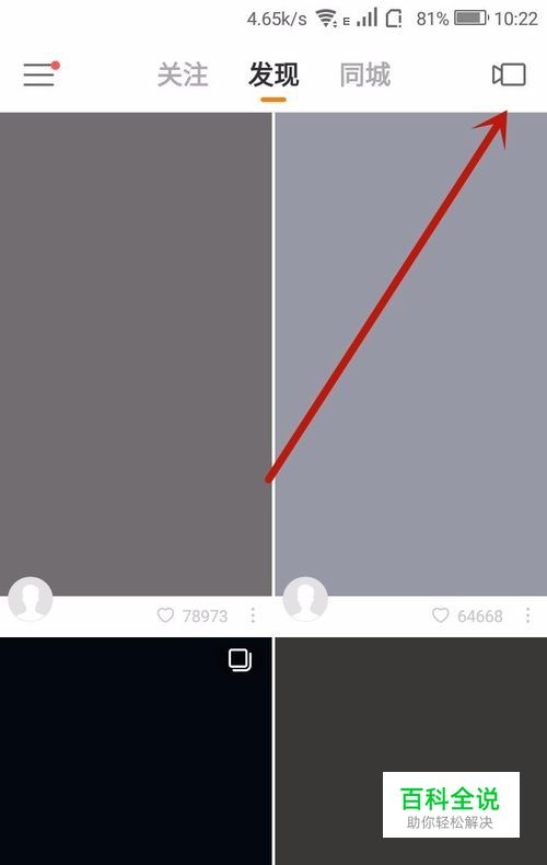 在手机里面打开快手APP,然后点击一下右上角的摄像机,如图所示