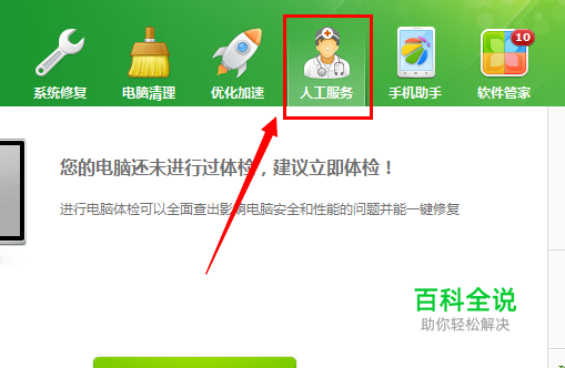 我们可以利用“360安全卫士”来修复:打开“360安全卫士”,点击“人工服务”项。 【360安全卫士】最新版下载:http://dl.360safe.com/netunion/20140425/360safe+79806+n1166e18691.exe