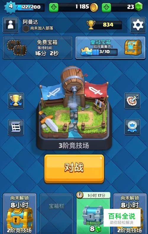 宝箱列表没有空余时会给出提示: 当我们的宝箱没有位置的时候(对战会给出我们提示)但是这个时候,对战给的皇冠和(奖杯)依然是有的,只是无法再获取胜利之后的宝箱,建议大家有空的位置了再进行游戏。