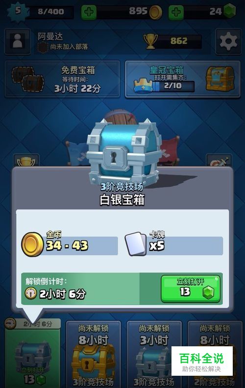不同的宝箱开启时间不同: 因为宝箱有不同的(稀有)程度,所以开启的时间也是不一样的,我们需要耐心的等待,可以计算一下时间,当然了,你要是钻石比较多,也可以直接用钻石秒开的哦。
