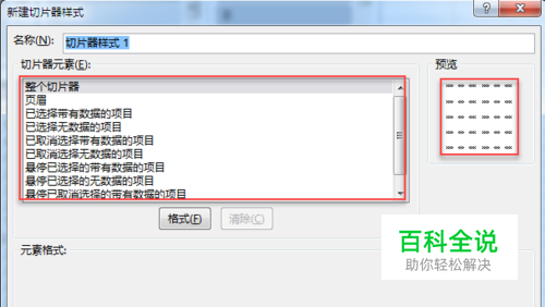 点击切片器样式下的“新建切片器样式”按钮就可以新建样式并预览。