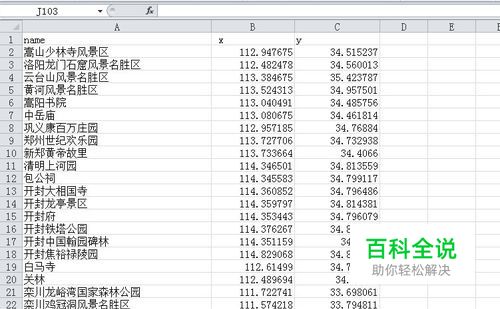 首先,打开查看一下EXCEL数据,X,Y即为经度和纬度,如图