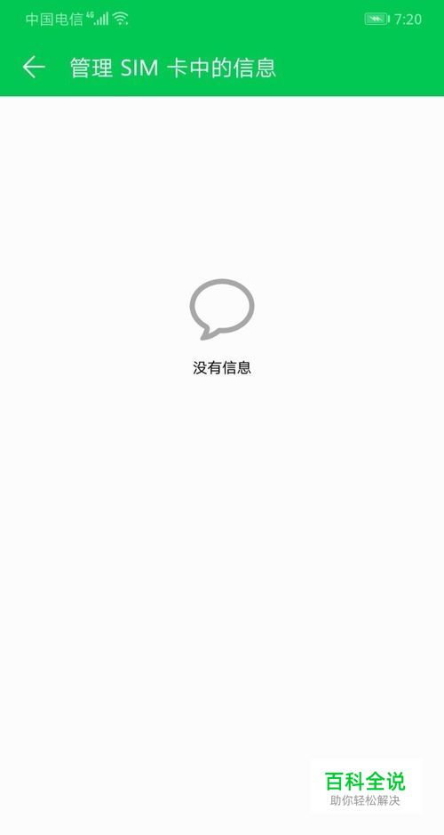 很快就进入到华为手机的管理SIM卡中的信息的界面了,因为我的SIM卡中没有信息,所以显示为没有信息。如果在SIM卡中有信息,就可以在这个界面上管理信息了。