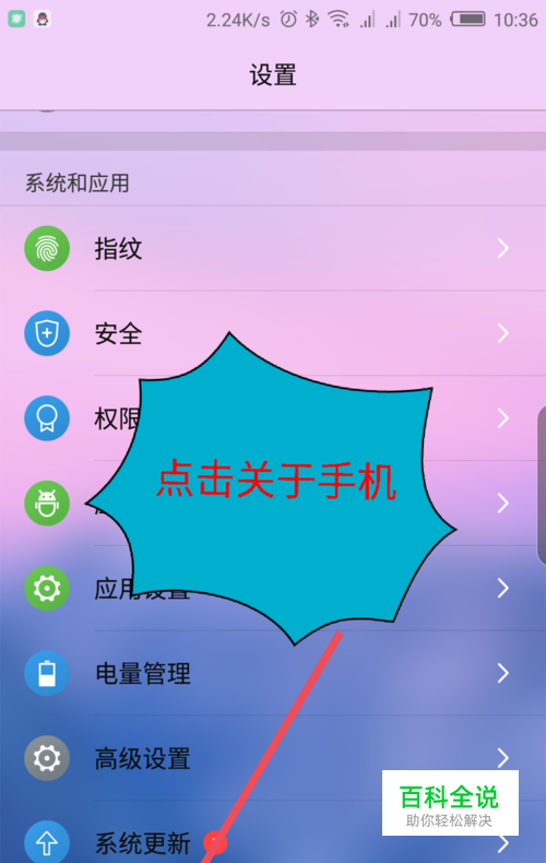 在设置界面,滑动到最下面,点击关于手机。