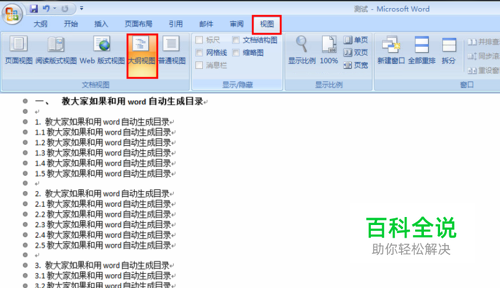 之后我们点击“视图”选择“大纲视图”