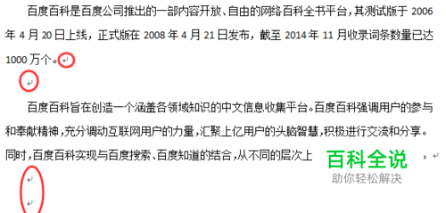 方法一: 首先,用word打开一篇文档,你会看到,word文档在段落结尾或空格的一行会有段落标记符,如下图所示,红色圆圈标注的。