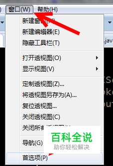 打开Eclipse,点击菜单中的窗口——首选项。