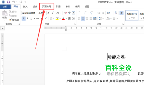 打开Word文档,然后点击顶部的“ 页面布局”选项卡。