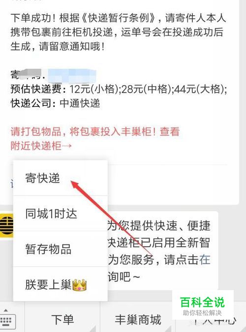 进入丰巢快递柜界面,选择下单,点击寄快递。