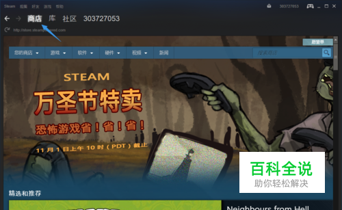 打开Steam客户端,登录你的Steam账号,然后点击 商店选项,进入到如图所示页面。