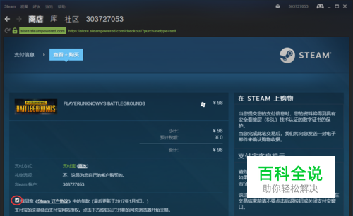 然后在 Steam订户协议旁边打上勾,再点击跳转到相应的支付渠道,完成支付即可。
