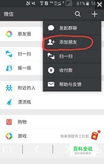 手机打开微信,点右上角的“+”号,展开后点击“添加朋友”