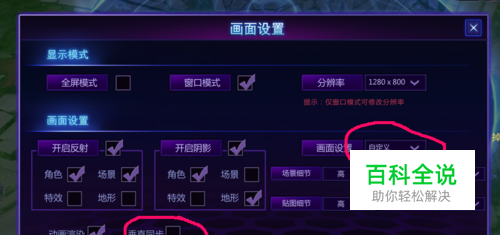 打开300英雄客户端,进入游戏,在按“ESC”键,点画面设置。先点窗口模式,右边选择自定义(非自定义下,左边选项无法进行勾选)。将左边“垂直同步”选项的勾给去掉就行了。只要电脑配置不是太差,右边自定义选项,全部选择高质量,游戏都可以流畅运行。