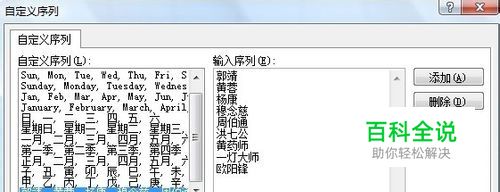 首先添加自定义序列 选择C2:C10,然后进行下拉操作: Excel 2003:单击菜单“工具→选项→自定义序列”。 Excel 2007:单击“Office按钮→Excel选项→常规”,单击“编辑自定义列表”。 Excel 2010:单击“文件→选项→高级”,在“常规”下单击“编辑自定义列表”。 然后单击“导入”按钮,将C列名单添加到自定义序列。