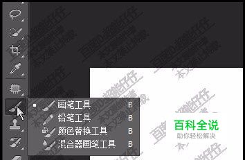 PS混合器画笔在哪?鼠标放在画布左侧的画笔工具这里,长点住,就会弹出一列工具。那么,混合器画笔就在其中。