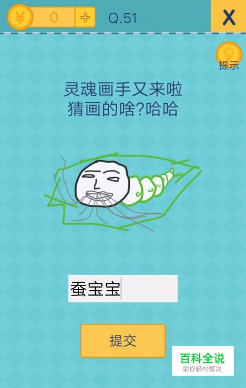 还有这种操作2第51关怎么过:蚕吐丝的图案,答案是蚕宝宝,提交即可顺利过关。