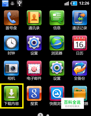 要想查看之前所下载的应用,我们就需要知道之前是利用手机自动下载器还是浏览器下载器所下载的应用。如果是手机自带下载器所下载,则在手机程序列表中点击“下载内容”应用。