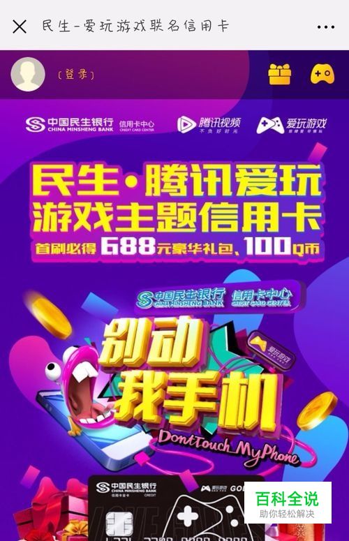 办一个爱玩游戏卡,是民生和腾讯联名推出,门槛低,普通而本期院校学生也可办理。