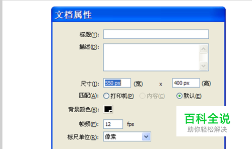 启动flash8,新建一个flash文档,背景色设为黑色,大小550*400,帧频为12fps。