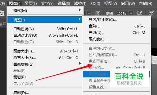 依照次序,点击菜单栏调整,因为是灰度图片这里面的色相,色彩平衡,都无法调节。
