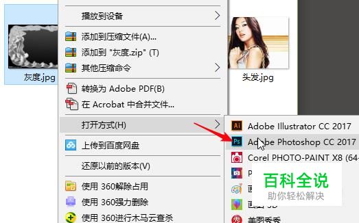 打开,灰度图片所在的文件夹,选中,鼠标右击选择打开方式为Photoshop。