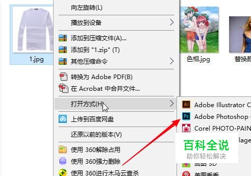 打开白色衬衫,所在的文件夹,选中图片,鼠标右击,选择打开方式为Photoshop。