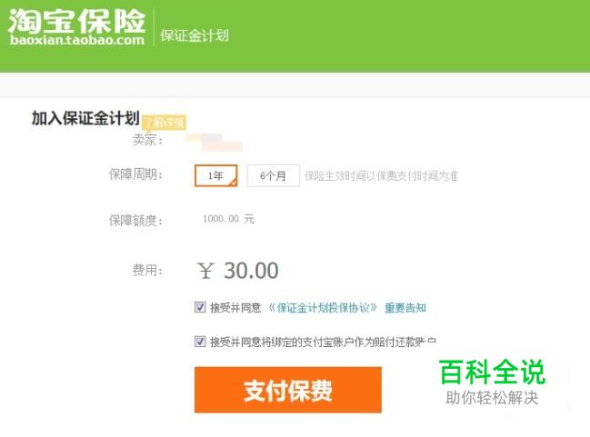 选择支付1年的保费30元,即可完成淘宝开店。