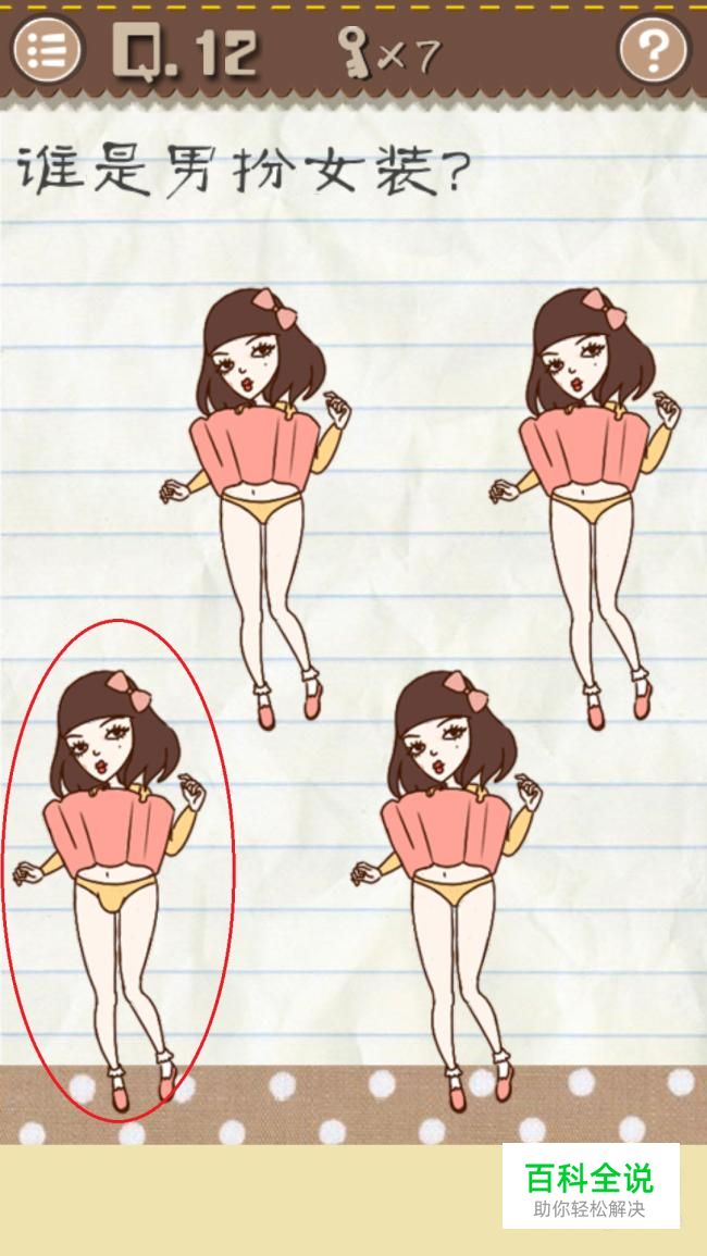 第十二关呢,叫我们寻找男扮女装的人,我们将手机倒置就能知道谁是男孩子了。
