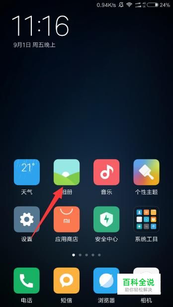 在手机桌面上打开手机相册。