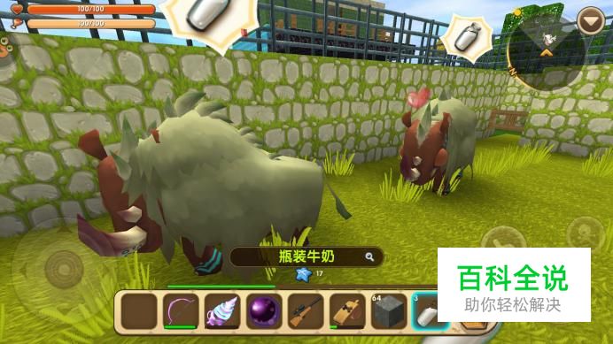 对牛喂食甘蔗之后,牛身上就会出现一瓶牛奶的图标,这个时候用小瓶子点击牛就能够获得牛奶了。