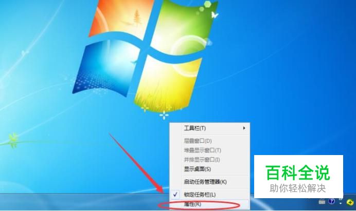 属性 右击【任务栏】,在弹出的菜单中,选择【属性】选项,如下图所示: