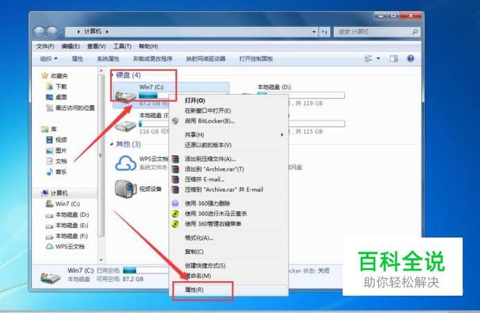右击【磁盘C】,在弹出的下来菜单中,选择【属性】,如下图所示: